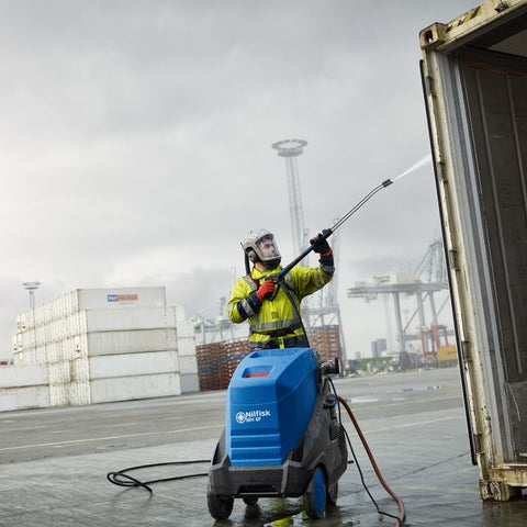 The MH 6P is the new addition to the Nilfisk premium hot water high-pressure washer range. A very effective tool for heavy-duty, industrial hot water cleaning in any sector. The MH 6P series features low running and maintenance costs, robustness, durability and high cleaning efficiency. Heating costs are reduced with the award-winning EcoPower boiler system with > 92% heating efficiency and high heating power levels. The MH 6P features the high performance 4 piston NA6 pump.