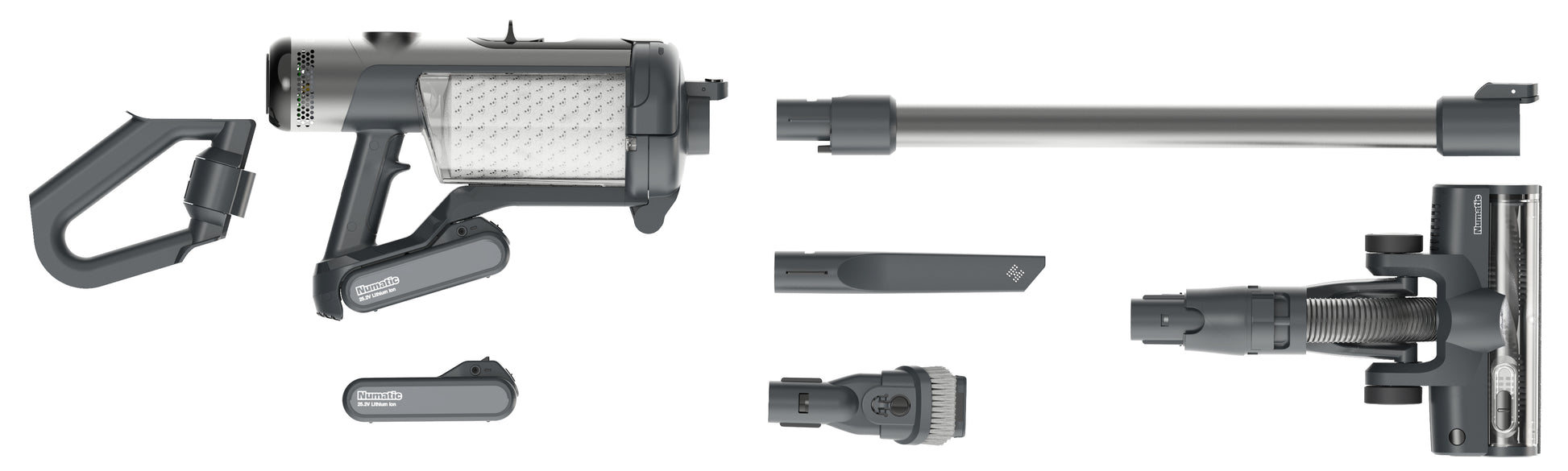 - Detachable Batterys - This Numatic Quick Comes with 2 Detachable battery's packs 25.2v Lithium-Ion Battery packs simple to swap charge & replace.