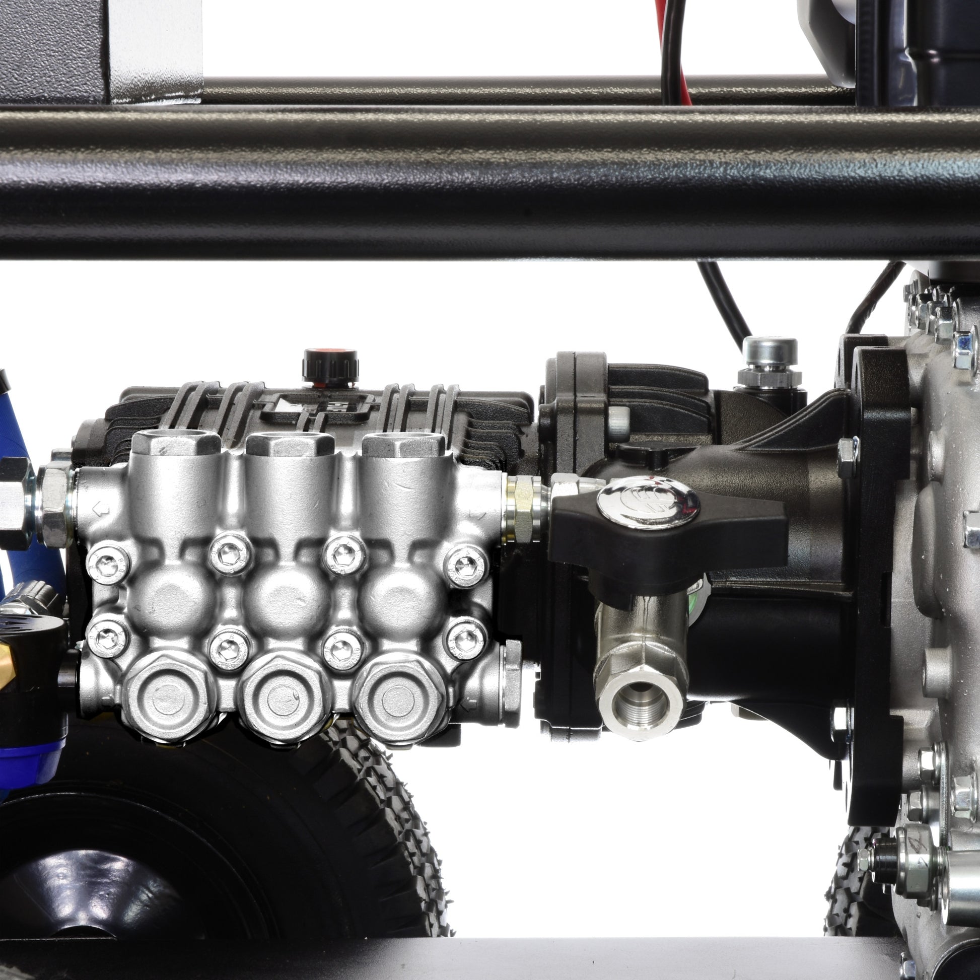 5 GB at 10 HP at 3000 psi (200 BAR) 15 litres per minute Driven by a gearbox, Trolley-mounted V-TUF Diesel Pressure Washer is renowned for being one of the best-built pressure washers available today and has both electric and pull start capabilities. It's all muscle and fantastic outcomes! Suitable for using a water barrel or the mains water supply.